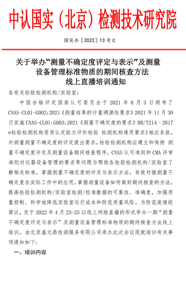 培训通知 您现在的位置:网站首页>培训通知>直播 测量不确定度评估与表示测量...