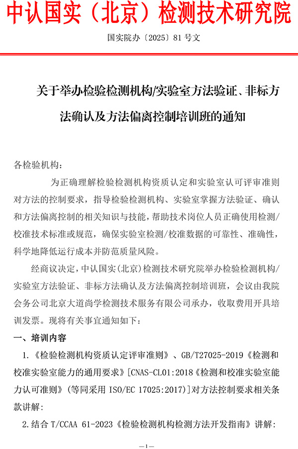 培训通知 您现在的位置:网站首页>培训通知>9月份实验室方法验证、非标方法确...