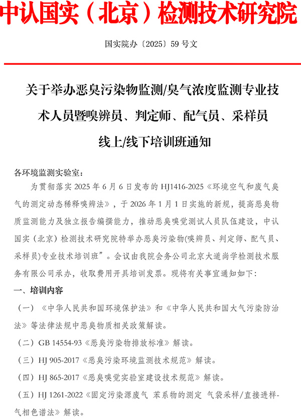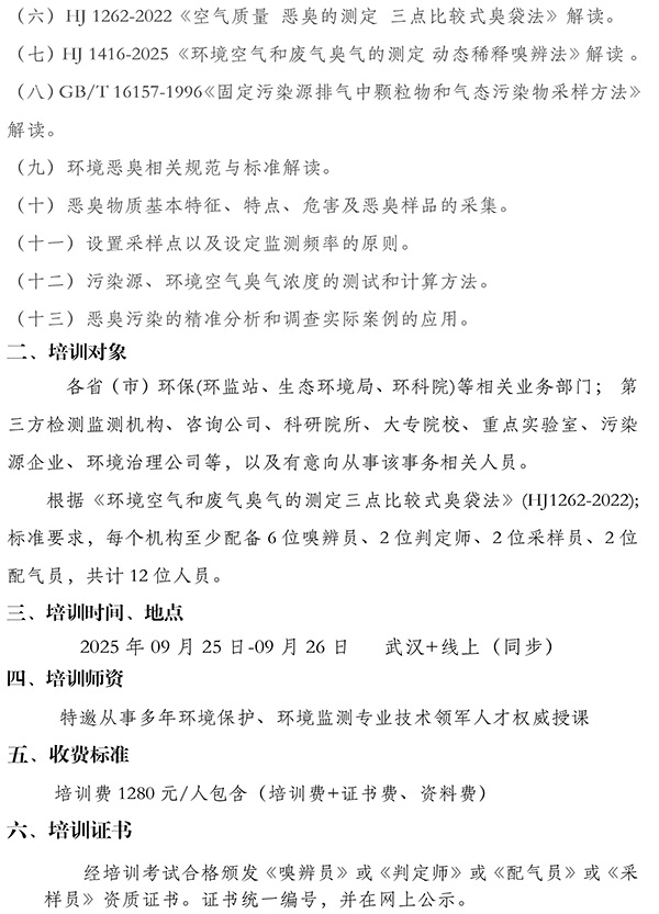 培训通知 您现在的位置:网站首页>培训通知>9月份嗅辨员、判定师等恶臭污染物...