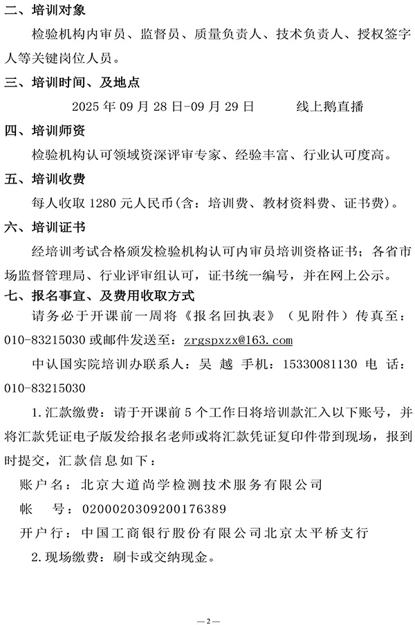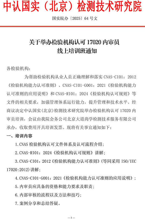 培训通知 您现在的位置:网站首页>培训通知>2025年9月17020检验机构...