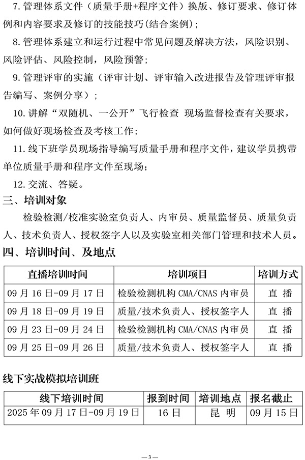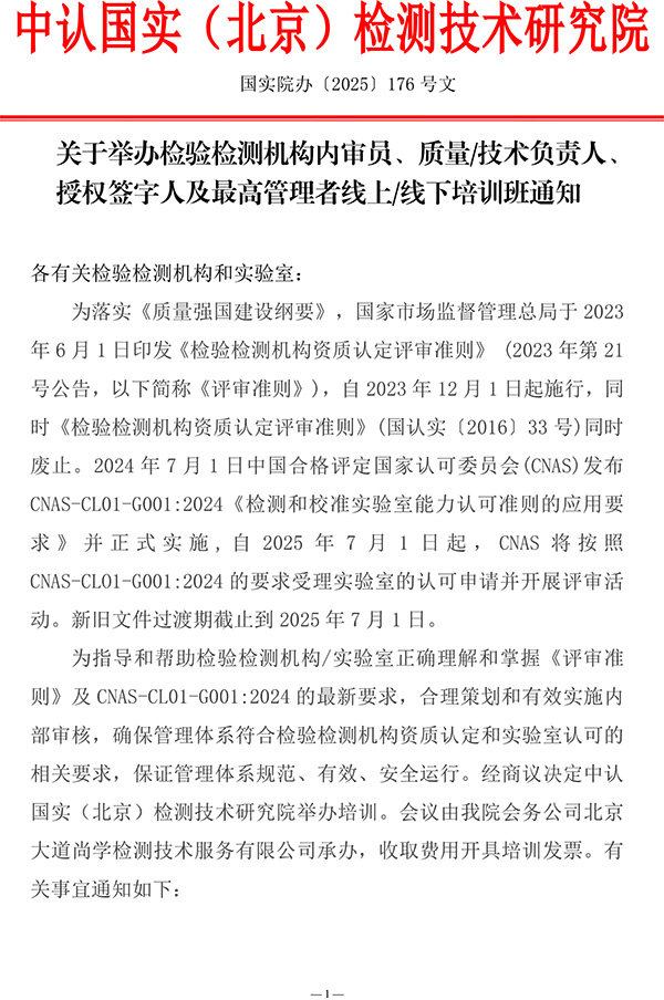 培训通知 您现在的位置:网站首页>培训通知>检验检测机构内审员、质量技术负责...
